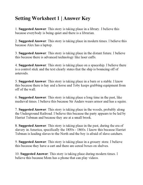 Setting worksheet 1 | answer key 1. I believe this because everybody is being quiet and there. 1 b 2 b 3 c 4 a 5 c 6 d 7 d.