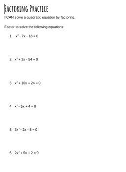 Solving Equations By Factoring Worksheet. Includes 13 questions and matching options for immediate feedback. Solving quadratic equations by factoring.