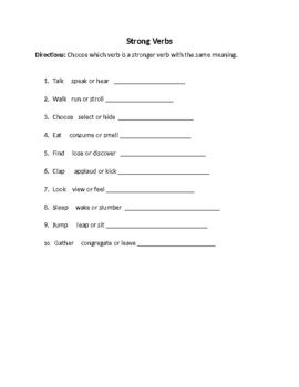Web strong verbs worksheet 1. Rewrite the sentence using that strong verb. A great revision strategy is to look for ways to make verbs more descriptive.